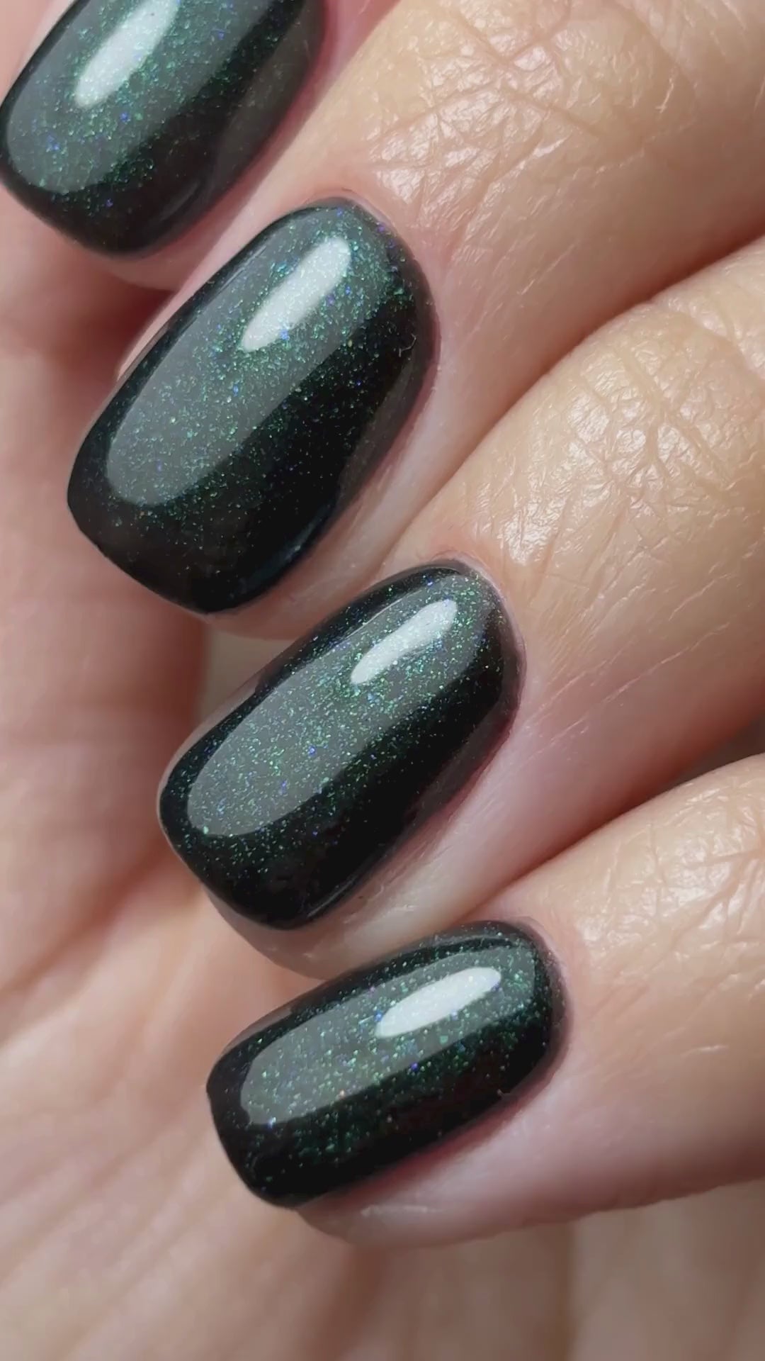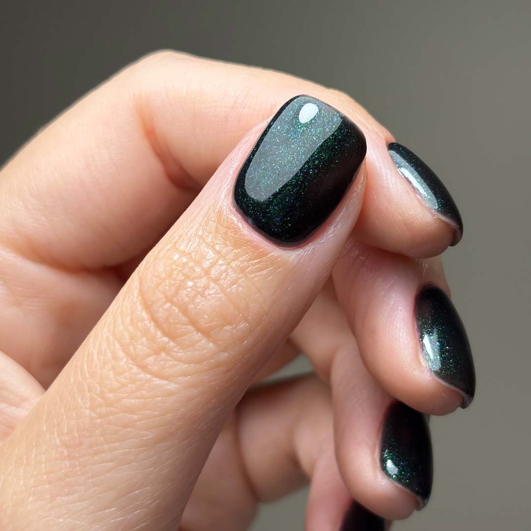 Invite Only - A shade as exclusive as its name. Invite Only is a luxurious dark emerald green glitter suspended in a deep, almost-black gel base. The ultra-fine shimmer catches the light with every movement, revealing hidden depths of jewel-toned sparkle while maintaining a rich, sophisticated darkness.