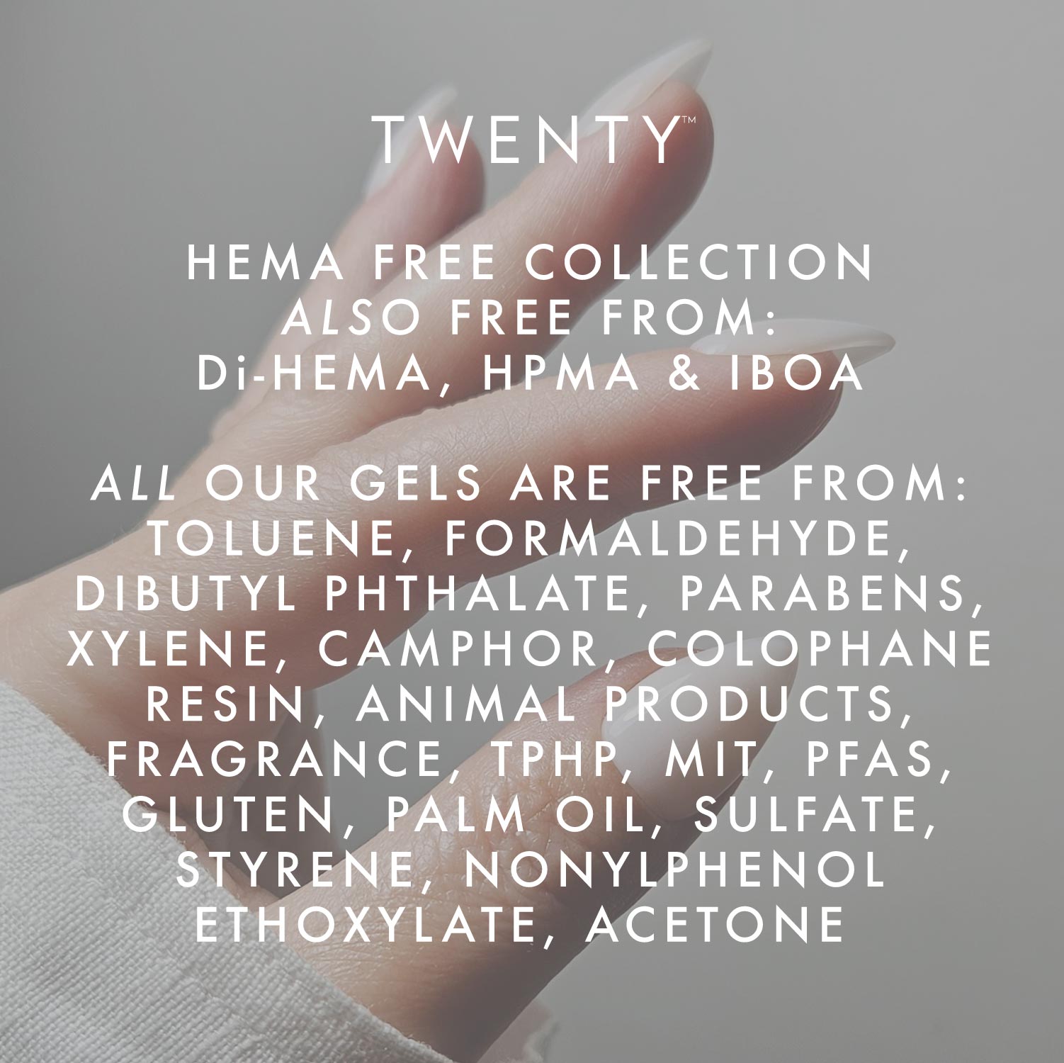 À utiliser avec une couche de base et une couche de finition TWENTY™ pour garantir que l'application du gel est complète.