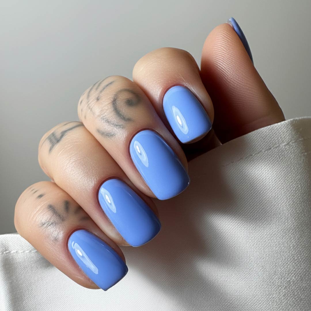Cornflower – a soft yet striking blue with a gentle lavender undertone, inspired by the delicate petals of the classic wildflower. This calming shade is fresh, feminine, and effortlessly elegant – perfect for creating a refined look that still feels playful and unique.